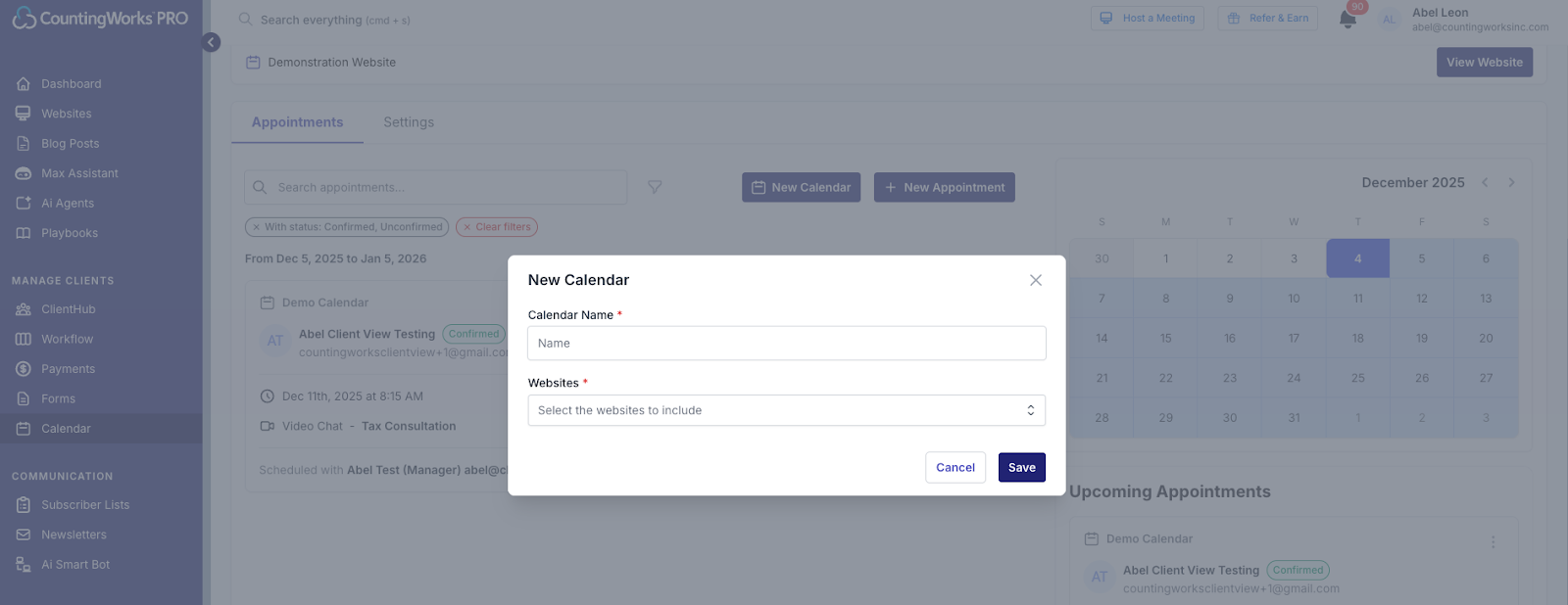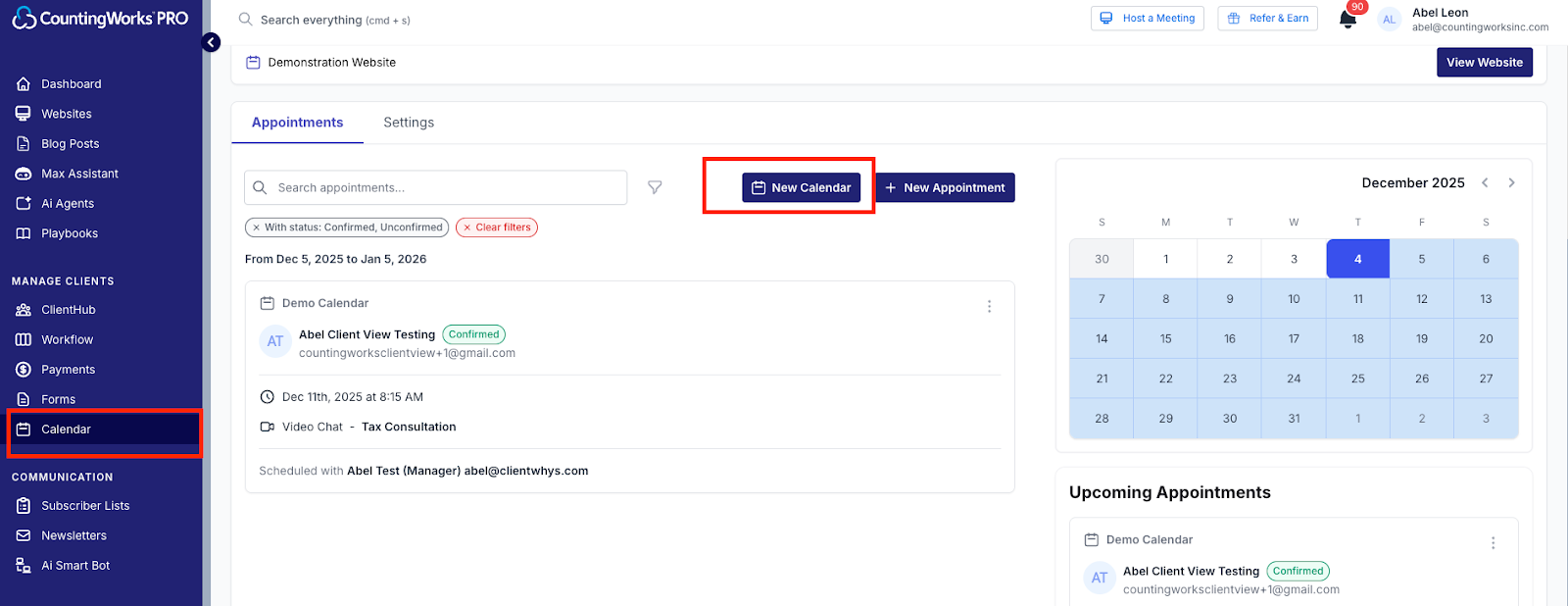 - In CountingWorks PRO, navigate to Calendar in the left menu.