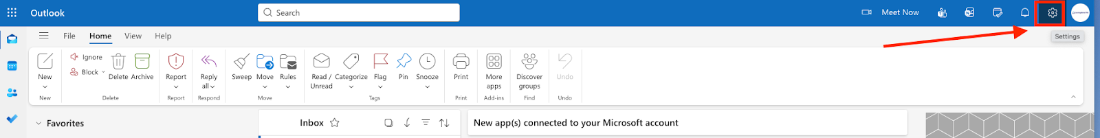 - Once signed in, click the Settings (gear icon) in the upper-right corner.