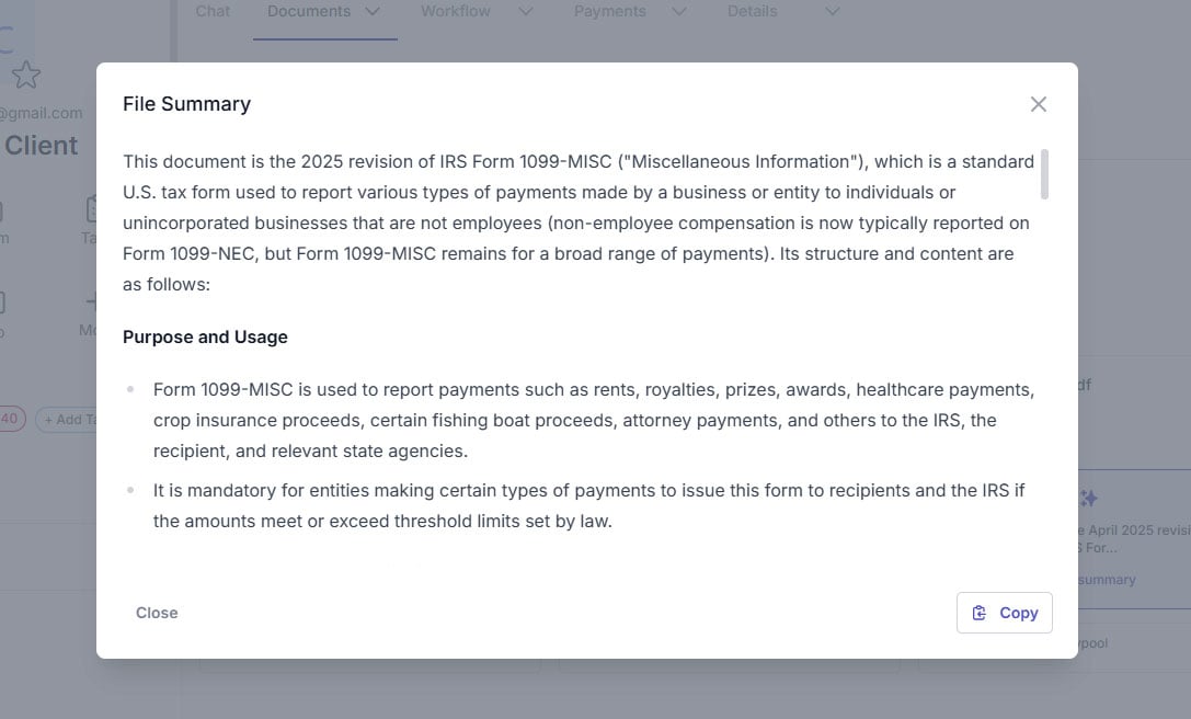 We’re excited to announce a major enhancement inside Client Hub: File AI Summary, a new AI-driven tool that helps you review client documents faster and more efficiently than ever.