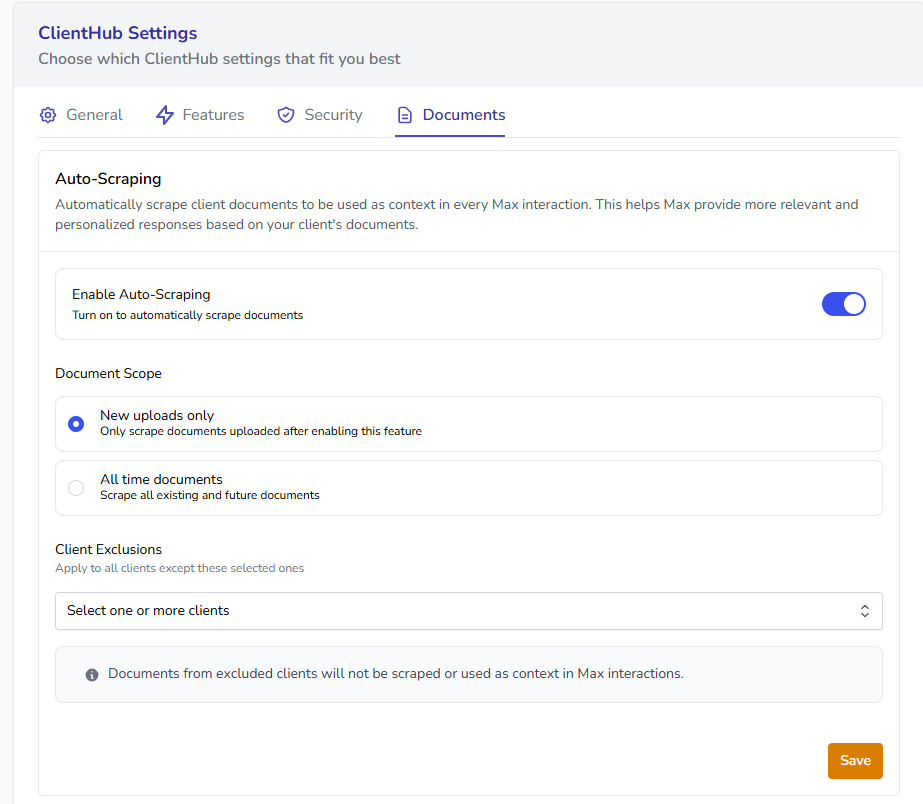 Settings → Documents → Enable Auto Scraping